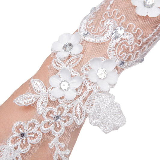 Bridal Wedding Gloves "Diamond" Studded Hollow Mesh
