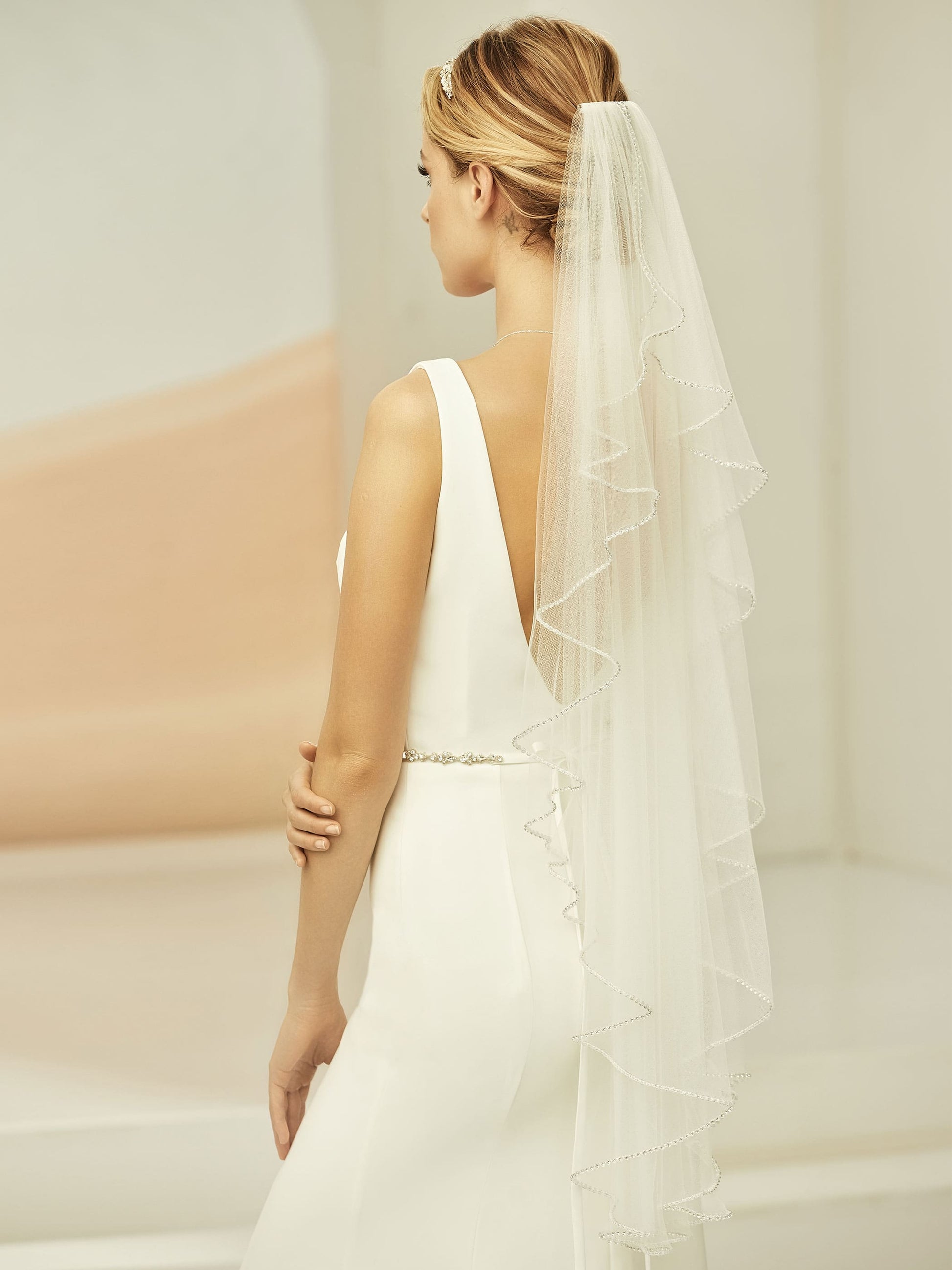 One-layered beaded edge soft tulle veil S399-Bianco Evento