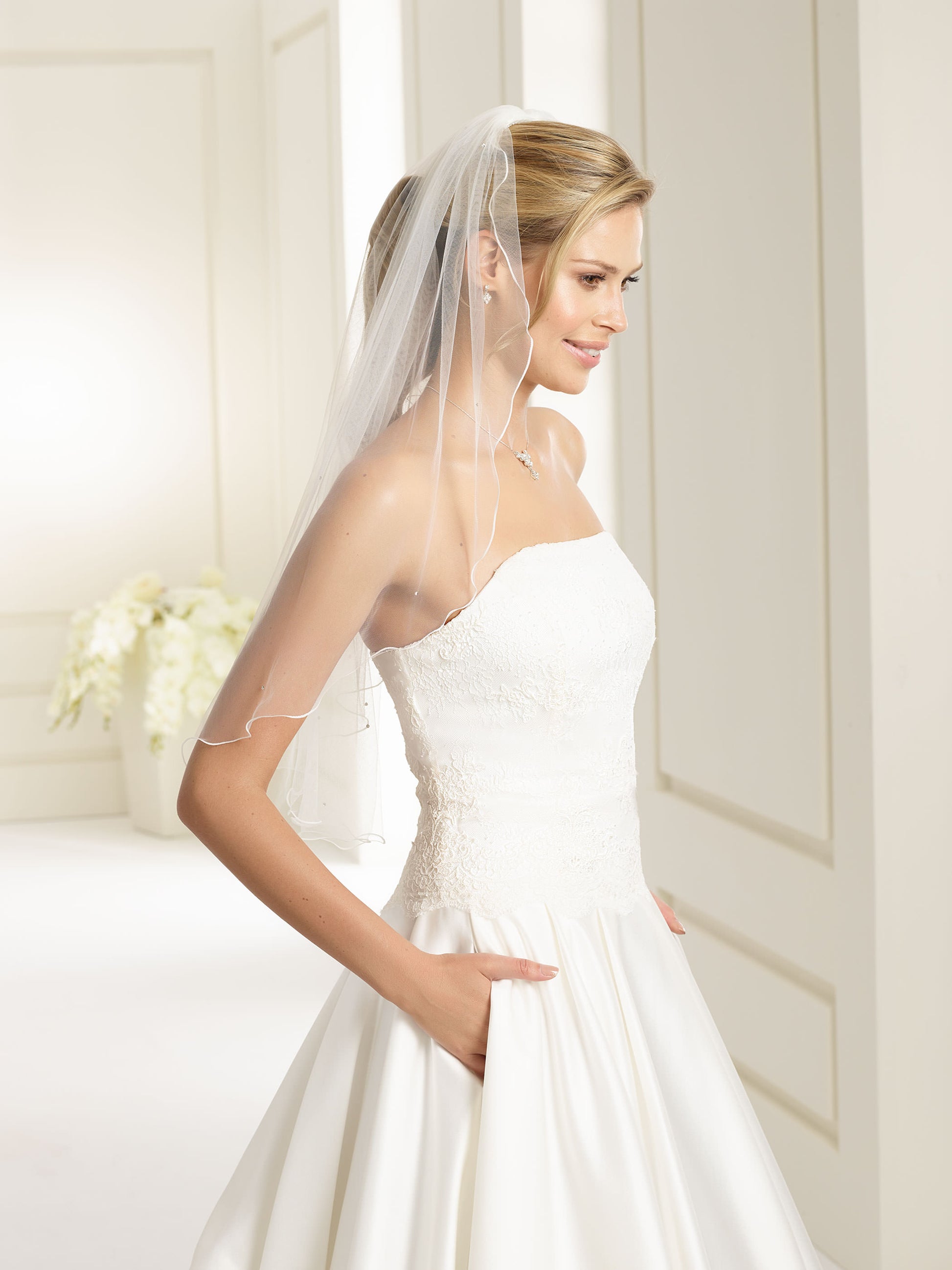 One-layered corded edge with crystals soft tulle veil S135-Bianco Evento