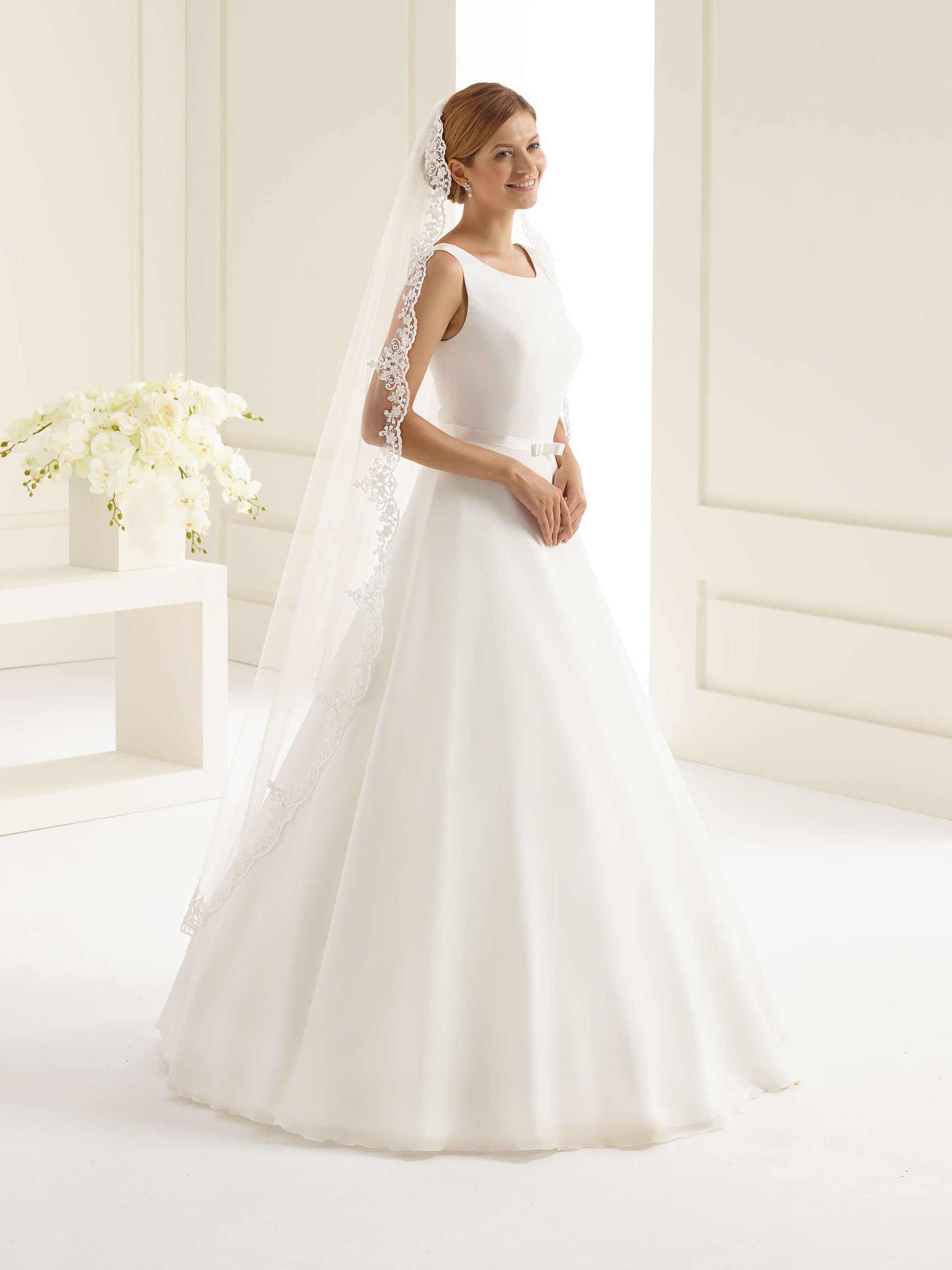 One-layered lace edge with glass beads diamond tulle veil S102-Bianco Evento