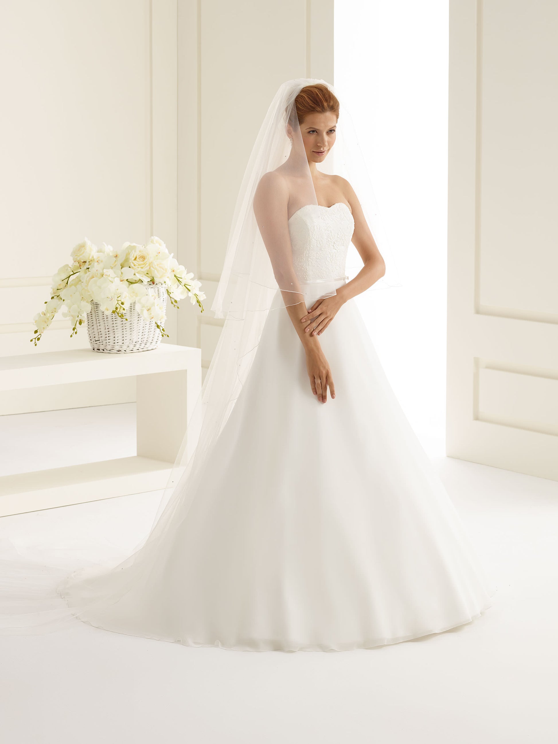 Two-layered corded edge with crystals diamond tulle veil S143S-Bianco Evento