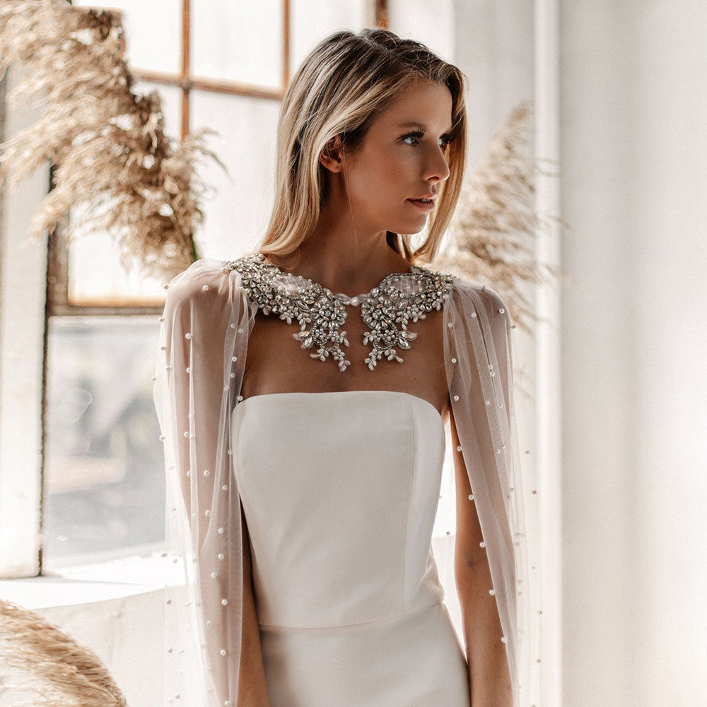 Wedding Dress Pearl Rhinestone Luxurious Temperament Trailing Shawl